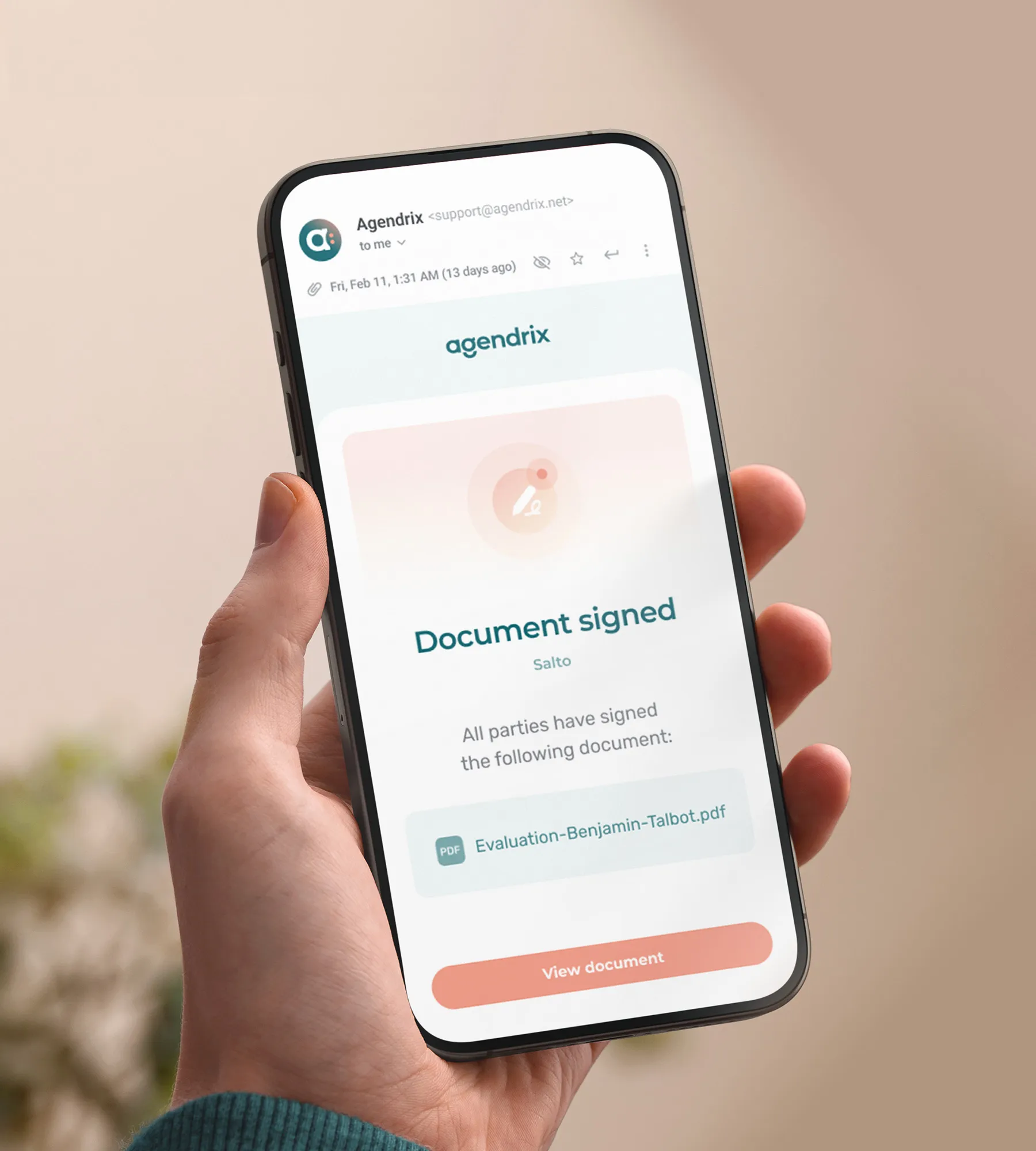 - The person concerned receives an email requesting that they sign the document.
