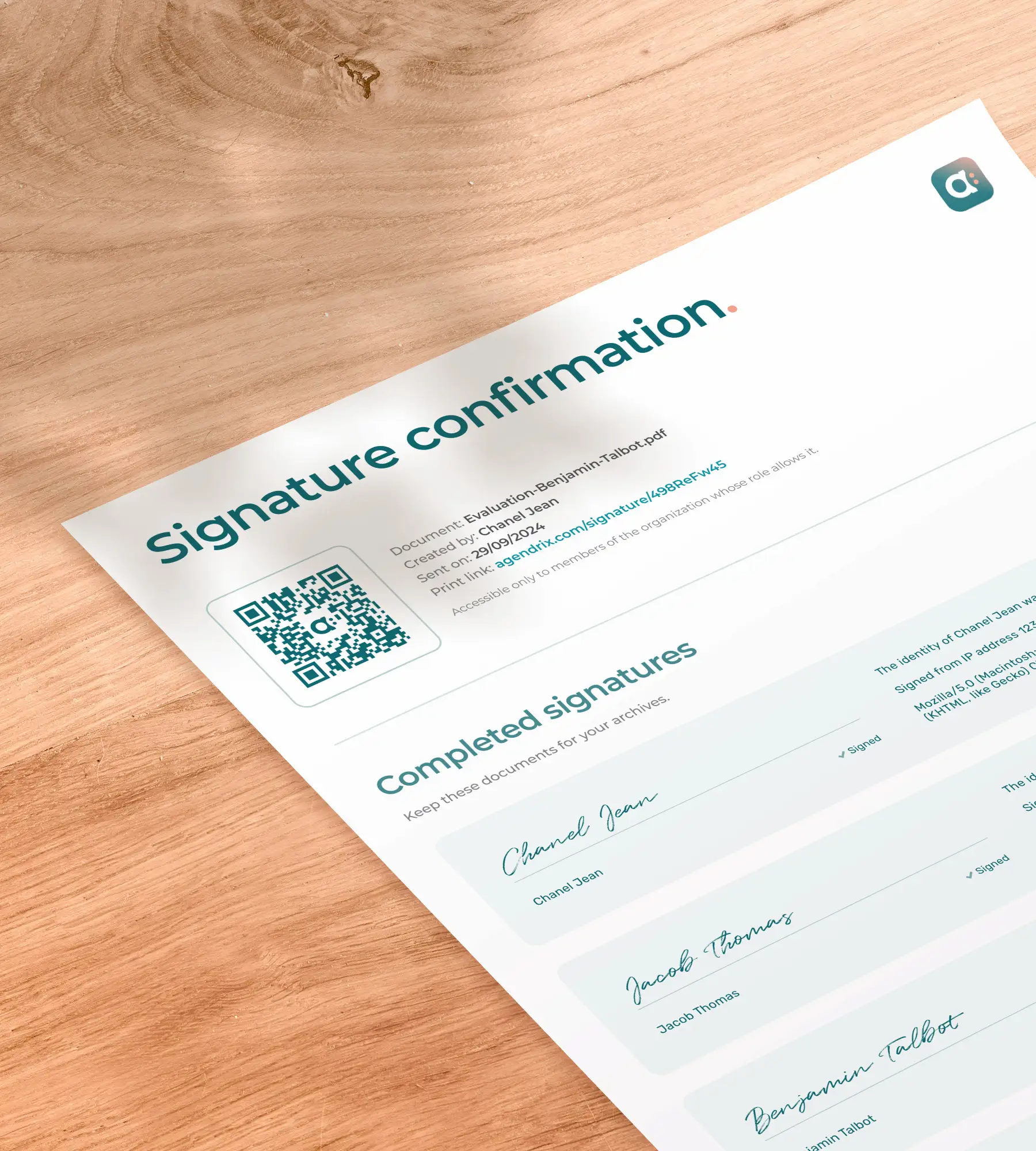 Here’s the complete process for using electronic signatures in Agendrix