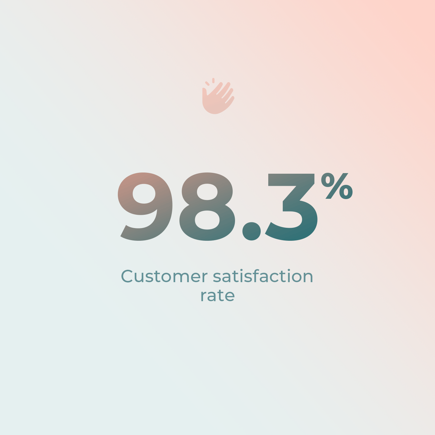 In 2024, we reached a historic milestone: a satisfaction rate of 98.3%. 🎉 This record showcases the quality of our product and the dedication and expertise of our 8 team members, who handled over 25,000 conversations in total—an impressive average of 5,000 conversations per person.