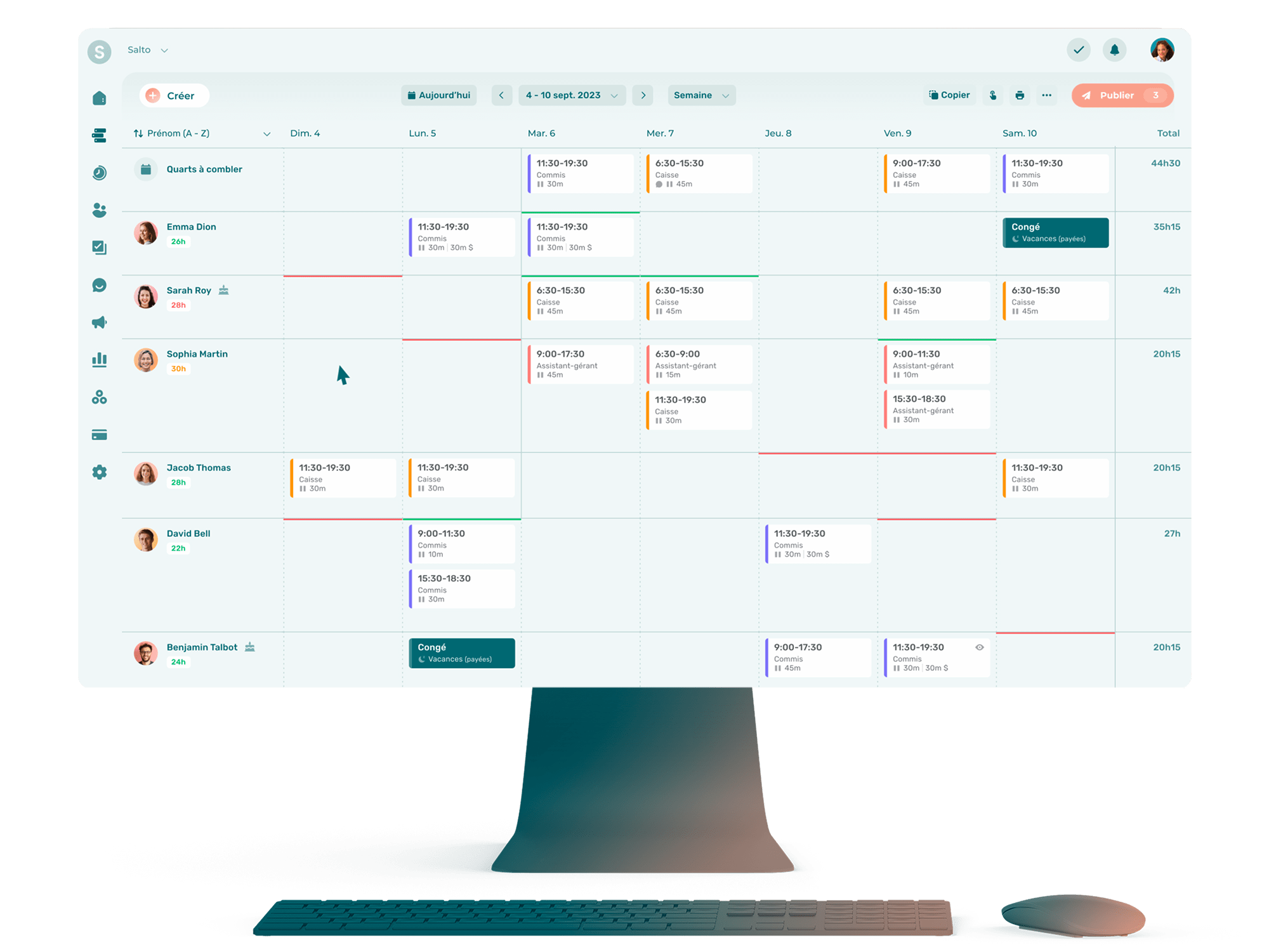 Employés, positions, congés – accédez en tout temps aux informations nécessaires pour créer vos plannings dans un SIRH convivial.