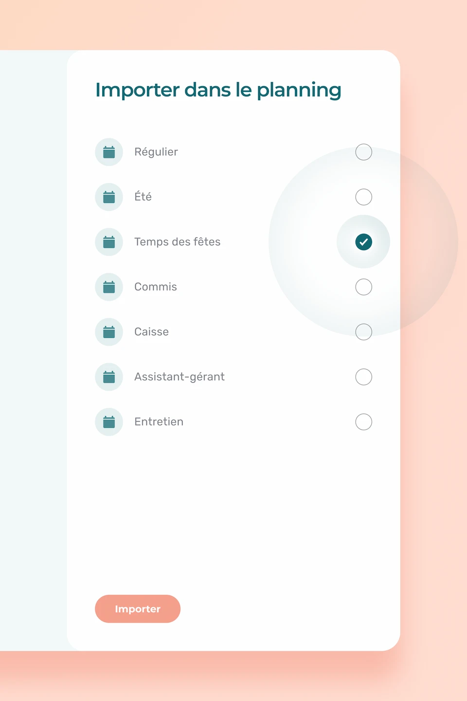 Concrètement, plutôt que de partir de zéro chaque semaine, vous aurez la possibilité de créer votre planning à partir d’un gabarit conçu préalablement. Si vos besoins changent selon le moment de l’année, vous pouvez bâtir et enregistrer différents gabarits qui correspondent à chaque période. Nommez vos gabarits de manière claire et ensuite, importez-les au moment opportun.