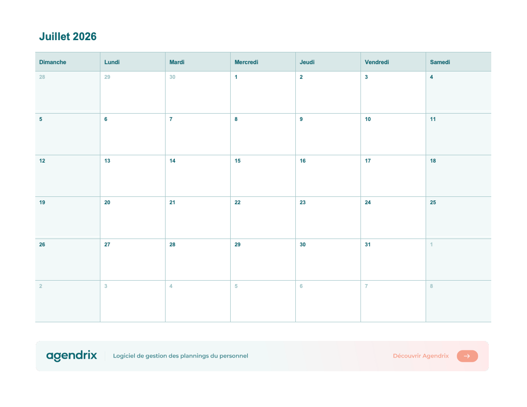 Quels sont les jours fériés au calendrier du mois de juillet 2026 ?