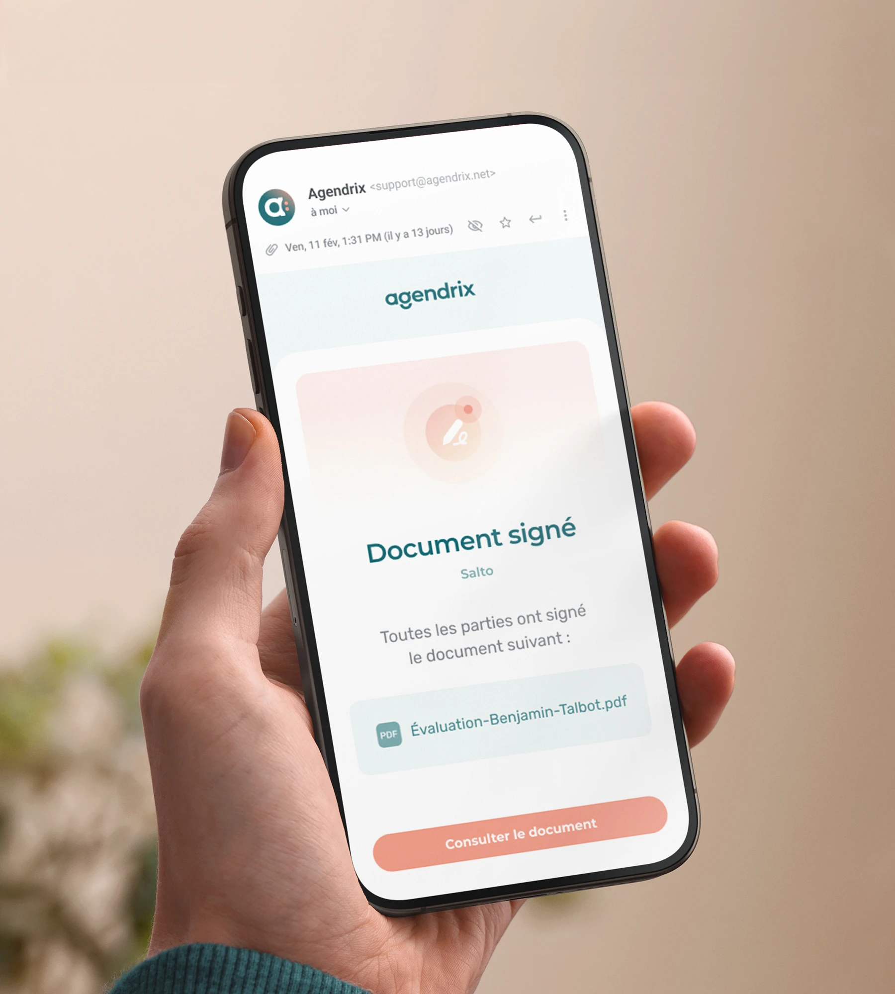 - La personne concernée reçoit un courriel qui l’invite à signer ledit document;