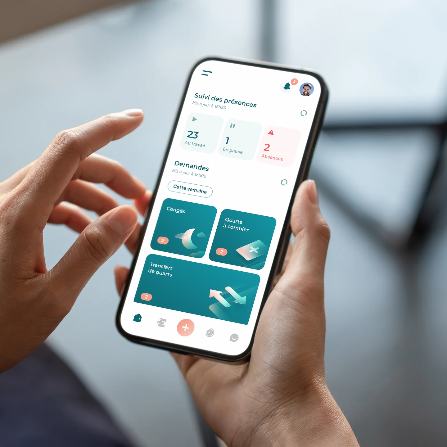 Nous avons conservé les demandes à traiter puisque nous savons à quel point elles sont utiles pour vous. Qu’il s’agisse de demandes de congés, d’échanges de quarts, de quarts à combler, chaque type de demande est affiché dans une composante distincte. Vous pouvez les approuver ou les refuser en quelques gestes, sans interrompre votre journée.