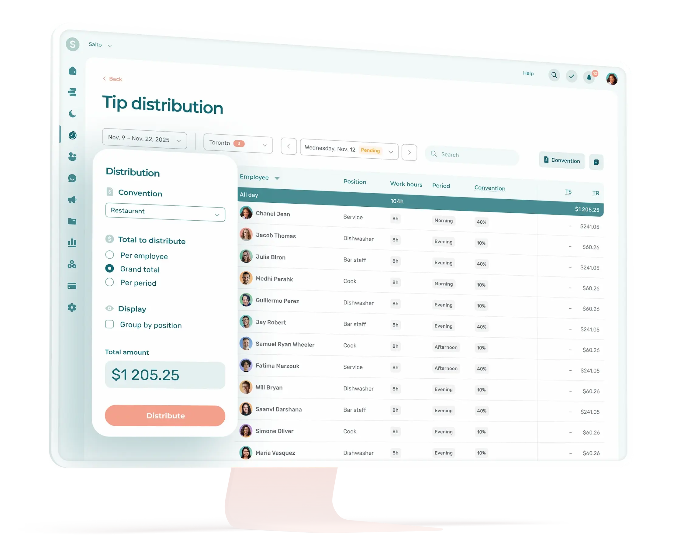 Agendrix integrates with many popular restaurant payroll software. You can also generate an Excel report to help you import the hours into your system.